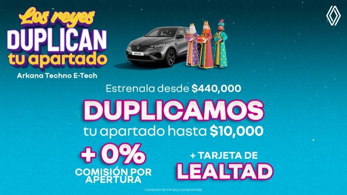 Si tu deseo es estrenar una SUV de lujo y tecnología, la Renault Koleos Techno te lo cumple. Llévala con un Bono de $10,000 directo para tu compra, 0% comisión por apertura en tu financiamiento y los primeros 2 servicios de mantenimiento incluidos. Además, disfruta de los beneficios de la Tarjeta de Lealtad y un Bono de Retorno de $5,000 para tu próxima renovación. Confort, espacio y una oferta tan exclusiva como el vehículo. Consulta términos y condiciones.